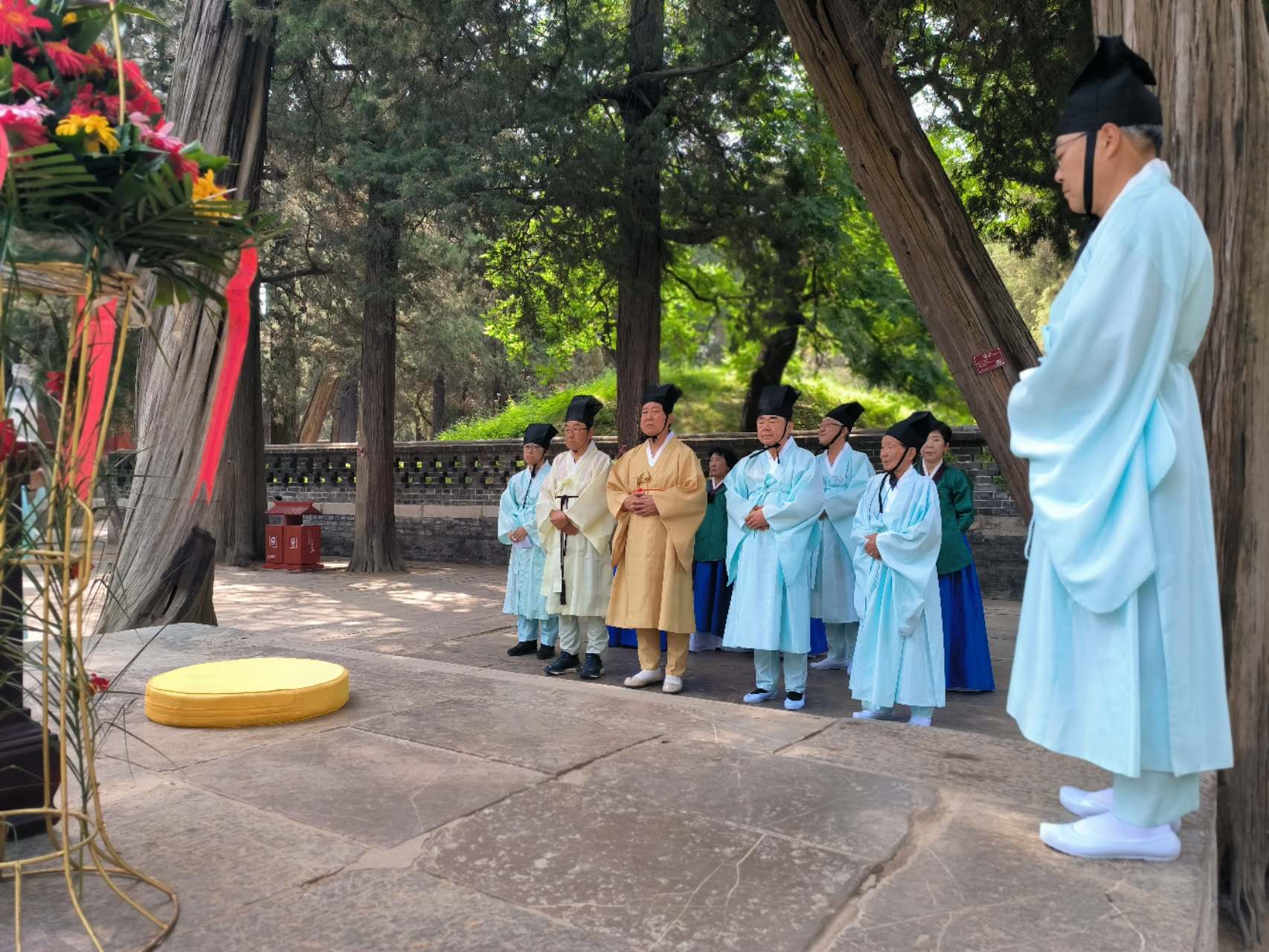 니산세계 유학센터 방문 전에 제주향교 일행이 공묘를 참배했다.곡부공묘에서는 제주향교 유림들이 공자에게 숭고한 경의를 표하며 유교문화에 대한 깊은 경의를 표했다. 곡부시사의 대표로서 공상위는 공묘의 역사적 기원과 문화 유산을 자세히 설명했다.